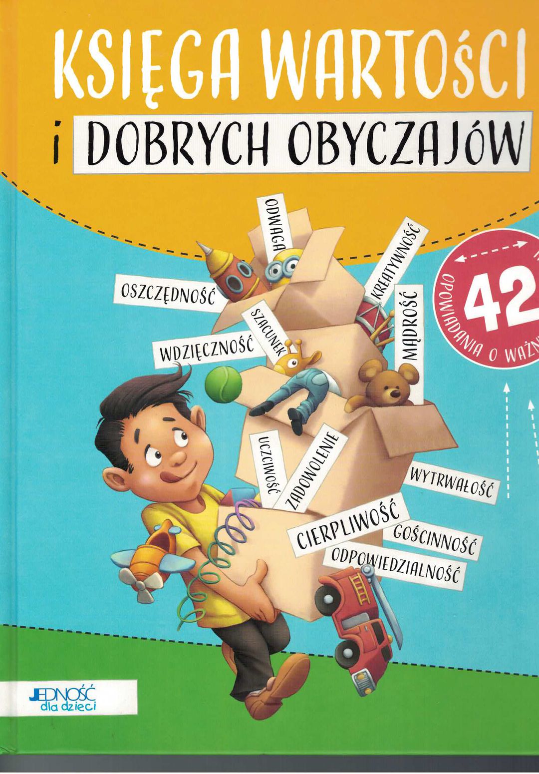 Księga wartości i dobrych obyczajów chce pomóc dzieciom stawać się mądrymi i odpowiedzialnymi ludźmi. Książka składa się z 42 krótkich opowiadań, których bohaterami są dzieci. Każda z historii poświęcona jest konkretnej postawie lub cesze charakteru, którą warto w sobie rozwijać - omówione w nich zostały takie pojęcia, jak cierpliwość, uprzejmość, odwaga, punktualność, kreatywność, samokontrola, tolerancja i wiele, wiele innych. Wszystkie historie opatrzone zostały przykuwającymi wzrok, pełnymi humoru ilustracjami, a towarzyszą im krótkie, celne wskazówki, inspirujące cytaty i ciekawe propozycje zabaw dla całej rodziny. W tej książce nie znajdziemy nawet grama moralizatorstwa. Nie ma tutaj zakazów, nakazów, nudnych „wykładów” o tym, co trzeba, a czego nie wolno - zamiast tego przytoczone opowiadania skłaniają do refleksji i pokazują przykłady, z których dzieci mogą samodzielnie wyciągać wnioski; poddają tematy do rozmów i przemyśleń.[www.jednosc.com.pl].